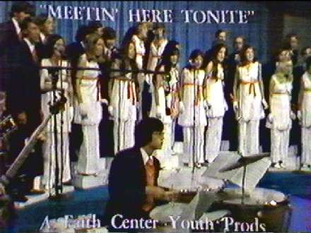 Meetin’ Here Tonite was one of the early specials produced at FBN. It aired live each Friday night on KHOF-TV. The program was co-hosted by Frankie Cardoza, wife of John Cardoza the Production Manager at FBN, and Rick Quintana who had previously worked in the production department at FBN. This program was part of the youth outreach ministry at Faith Center. The theme song consisted of upbeat country style music with the lyrics of, “There’s a meetin’ here tonight.”
